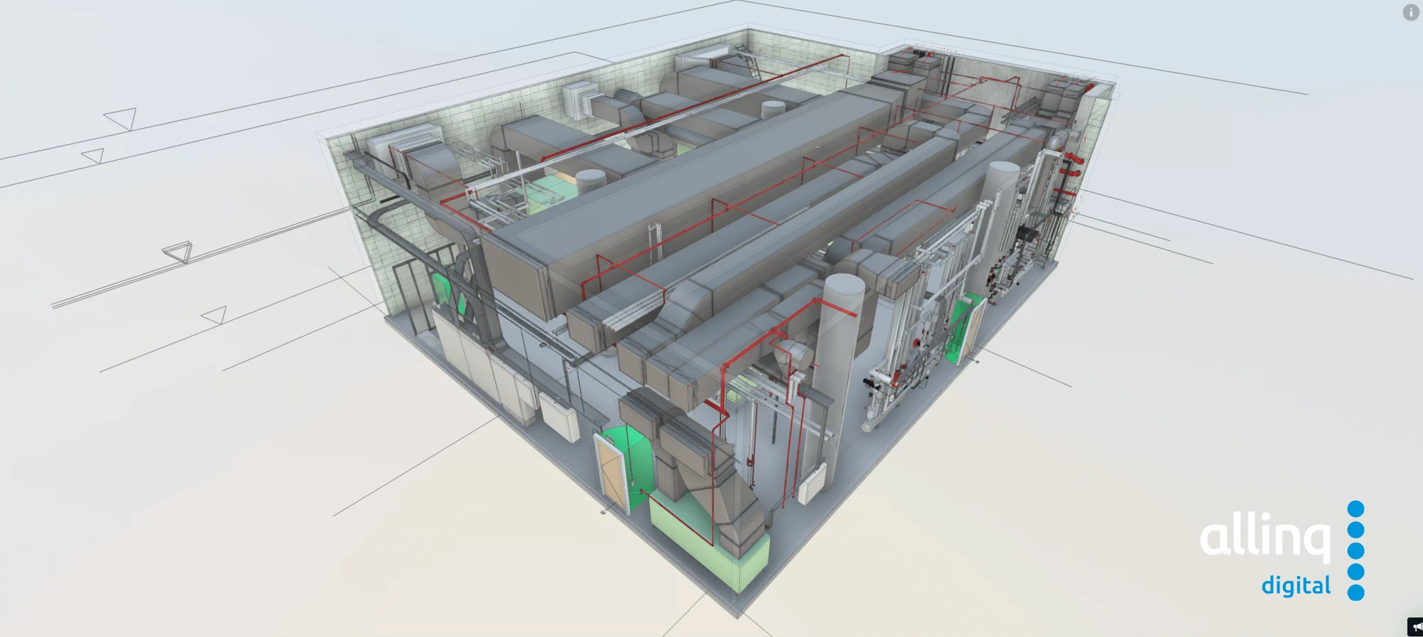Goor氏はテクニカルルームのモデリングに「標準的なBIMワークフローを使った」と説明していますが、実際にはそれ以上の工夫が施されていました。むしろAllinq Digitalの強みはこのワークフローそのものを進化させている点にあります。