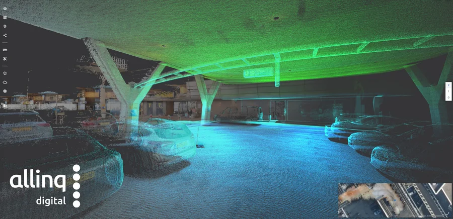 これまでの協業実績を踏まえ、空港は革新的なソリューションを提供するAllinq Digital社に対し、P1駐車場全体の点群データ取得と高精度なBIMモデルの構築を依頼しました。取得した点群データは必要なコンクリート量の算出や資材リストの作成、各種寸法計測に活用されます。また、完成したBIMモデルは施工業者とも共有され、施工計画の最適化や作業効率の向上に寄与する見込みです。