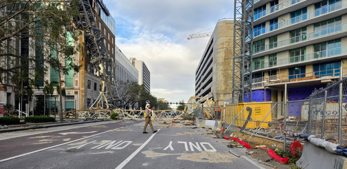 GFY社はハリケーン”ミルトン”の通過後、セントピーターズバーグのダウンタウンにある400 Central高層ビルで発生したクレーン倒壊事故の現場記録を依頼されました。市当局と保険会社は、現場の状況を完全に網羅した記録を必要としていました。GFY社は要請の翌日には既に現場入りしていました。