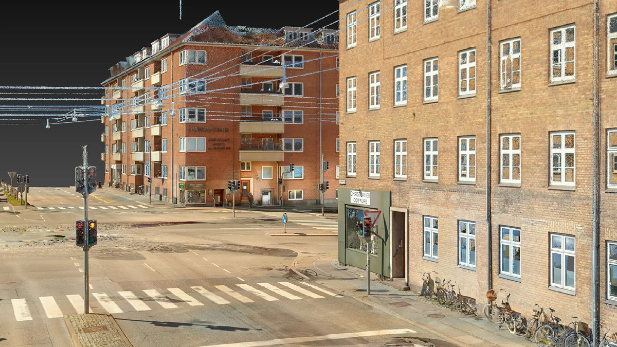 デンマーク最大手の測量・土地管理サービス企業のLE34社の協力のもと、道路交差点をNavVis VLX3で屋外モバイルマッピングを実施しました。取得した点群データはNavVis IVION Processingで処理され、その後、地形道路測量図として活用されました。