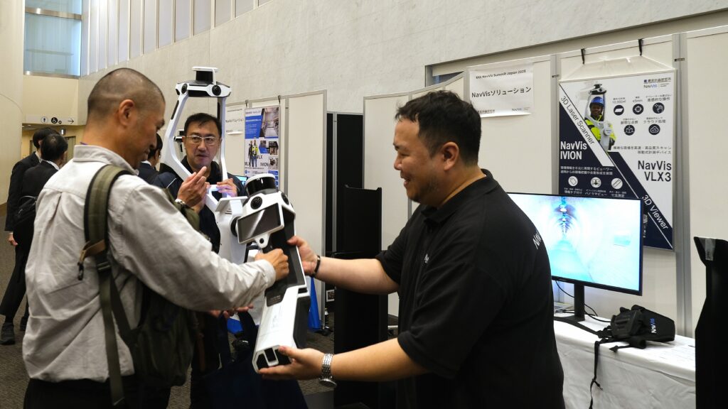 来場者には、NavVis MLXやNavVis VLX、NavVis IVIONに実際に触れて操作を体験いただき、操作方法や活用例をご紹介しました。